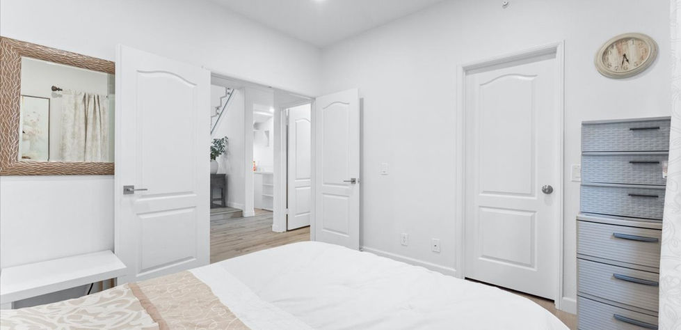 The chef-inspired kitchen features quartz countertops, crisp white cabinetry, a center island, and premium appliances. It opens effortlessly into the inviting family room with a second fireplace. A built-in bar tucked beneath the staircase adds an extra layer of charm and convenience. A downstairs bedroom with its own full bathroom is ideal for guests or a private office.